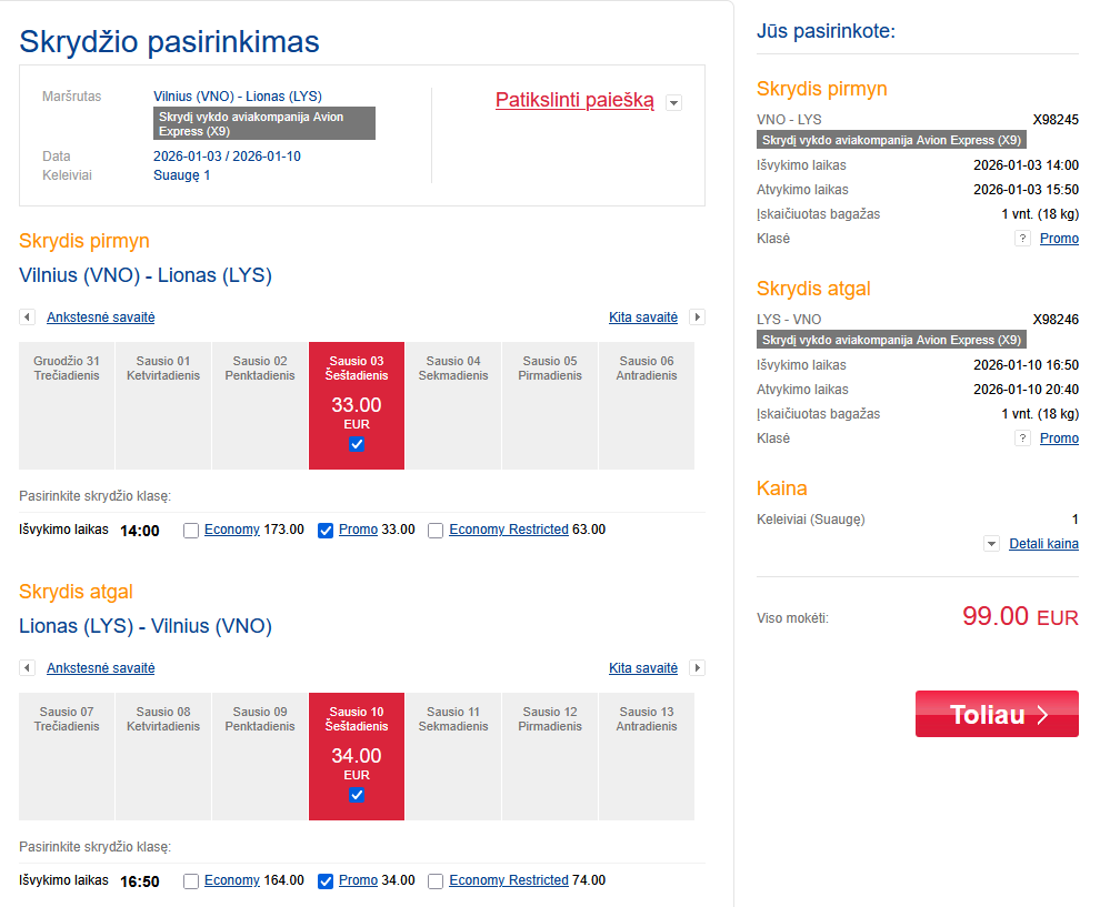 Lėktuvo bilietus užsisakyti galite puslapyje skrydžių paieška arba oficialioje oro linijų svetainėje. Paspaudę nuorodą įveskite nurodytą maršrutą bei datą ir matysite mūsų kelionės pasiūlymą oficialiame oro linijų puslapyje. Beliks rezervuoti ir mėgautis savo kelione.