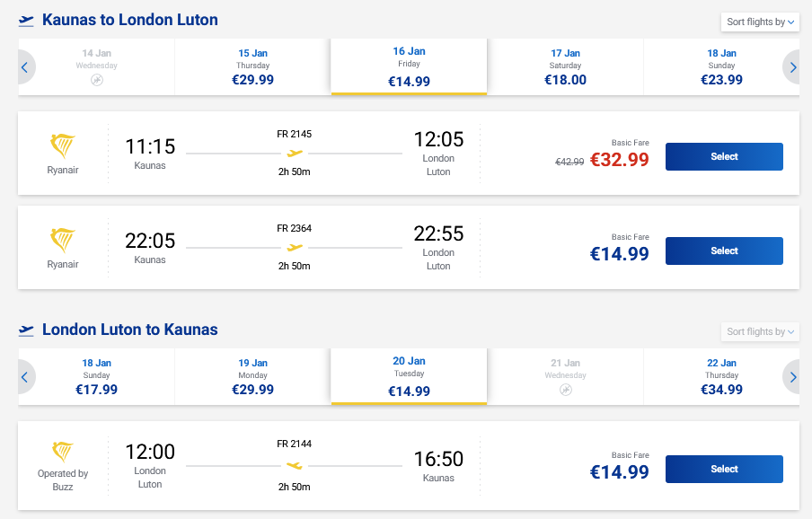 Pigūs skrydžiai į Londoną, JK tiesiogiai iš Kauno ir atgal su „Ryanair“ oro linijomis.
