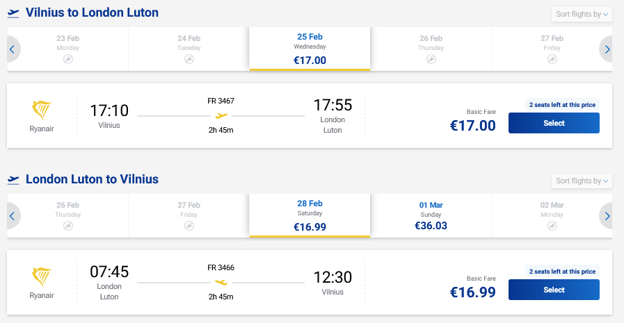 Pigūs skrydžiai į Londoną, JK tiesiogiai iš Vilniaus ir atgal su „Ryanair“ oro linijomis.