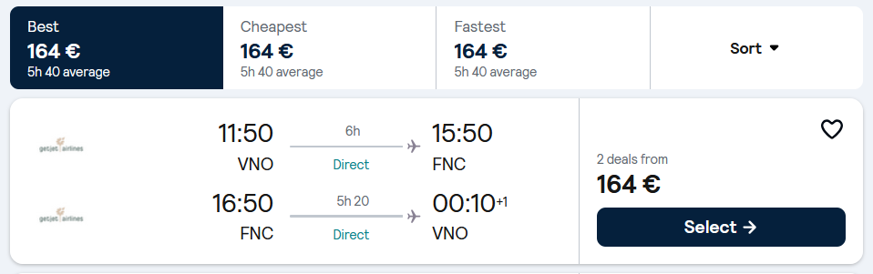 Vilnius – Funšalis – Vilnius