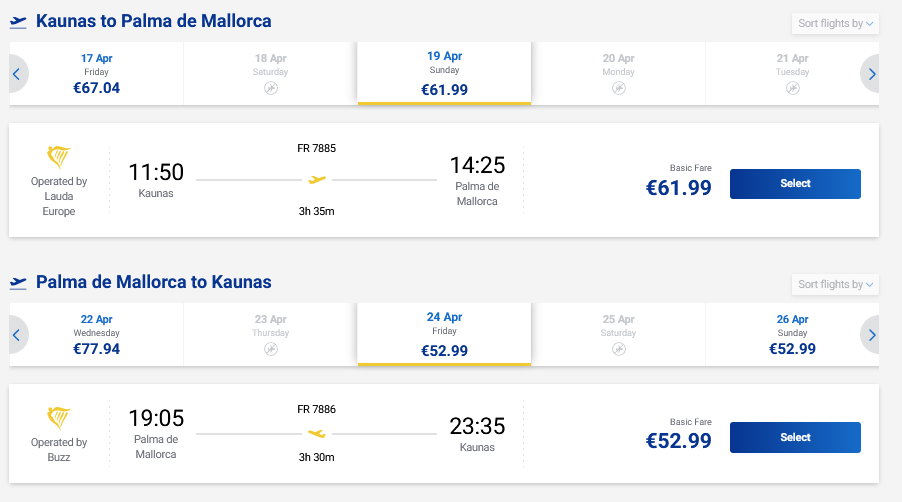 Tiesioginiai skrydžiai į Palma, Maljorką iš Kauno ir atgal su „Ryanair“.