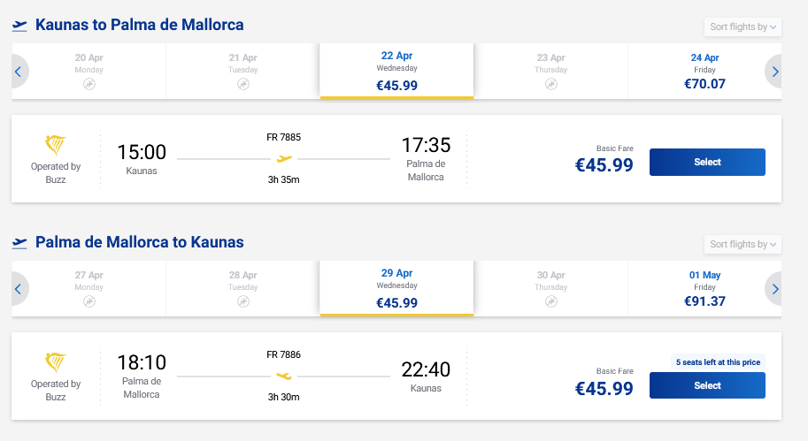 Tiesioginiai skrydžiai į Palma, Maljorką iš Kauno ir atgal su „Ryanair“.