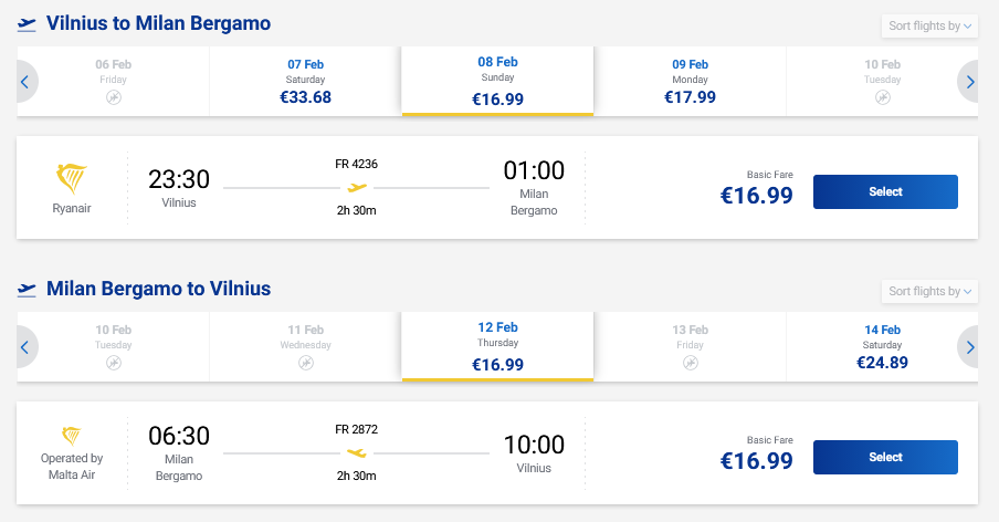 Skrydžiai į Milaną, Italiją tiesiogiai iš Vilniaus ir atgal su „Ryanair“ oro linijomis.