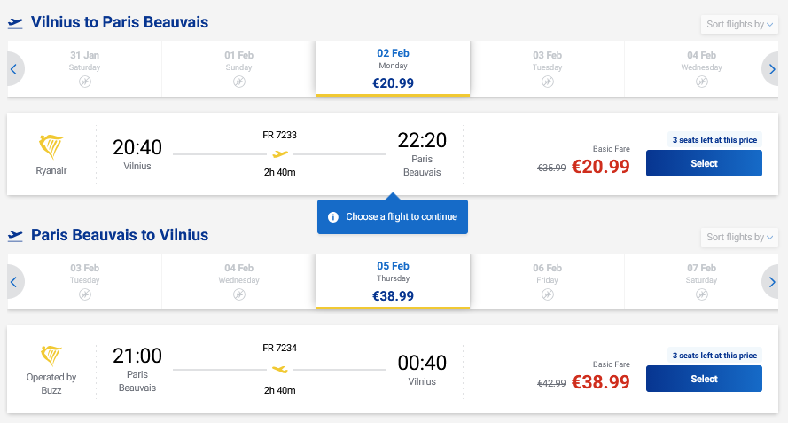 Pigūs skrydžiai į Paryžių, Prancūziją tiesiogiai iš Vilniaus ir atgal su „Ryanair“ oro linijomis.