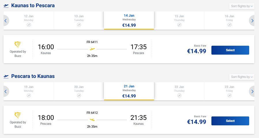 Skrydžiai į Peskarą, Italiją tiesiogiai iš Kauno ir atgal su „Ryanair“ oro linijomis.