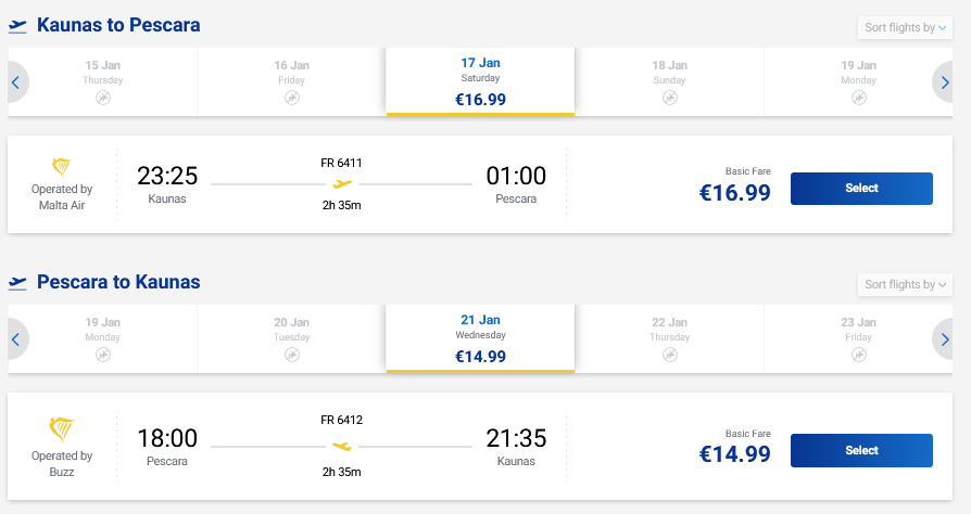 Skrydžiai į Peskarą, Italiją tiesiogiai iš Kauno ir atgal su „Ryanair“ oro linijomis.