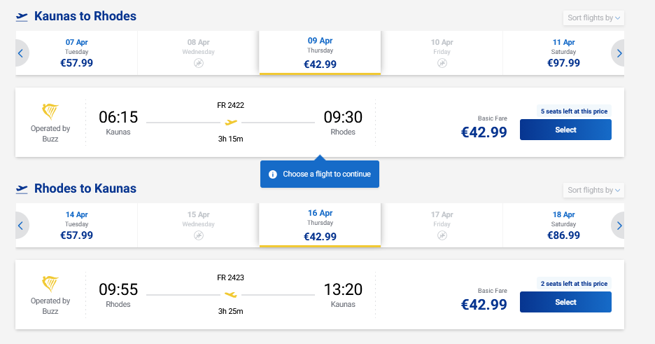 Skrydžiai į Rodo salą tiesiogiai iš Kauno ir atgal su „Ryanair“ oro linijomis.