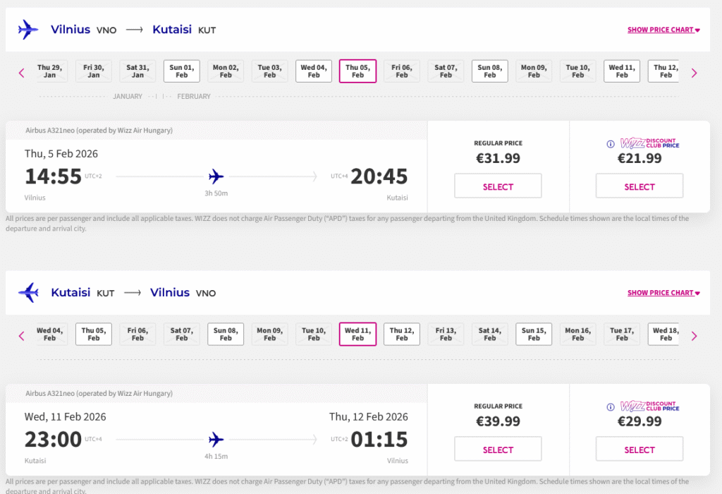 Skrydžiai į Kutaisį, Sakartvelą tiesiogiai iš Vilniaus ir atgal su „Wizzair“ oro linijomis.
