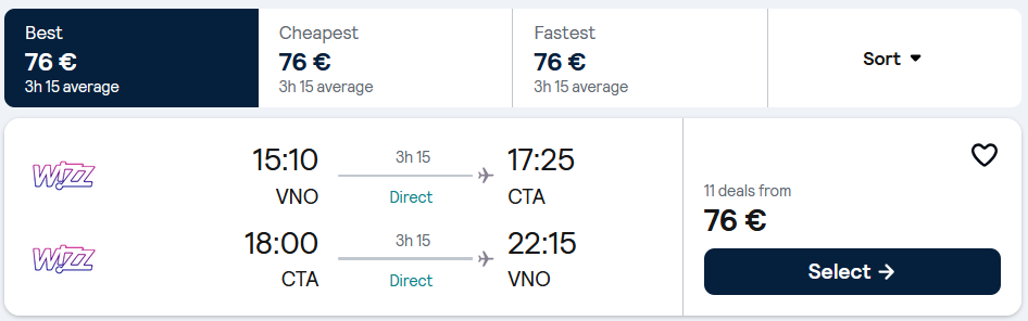 Pigūs skrydžiai į Kataniją, Siciliją tiesiogiai iš Vilniaus ir atgal su „Wizzair“ oro linijomis.