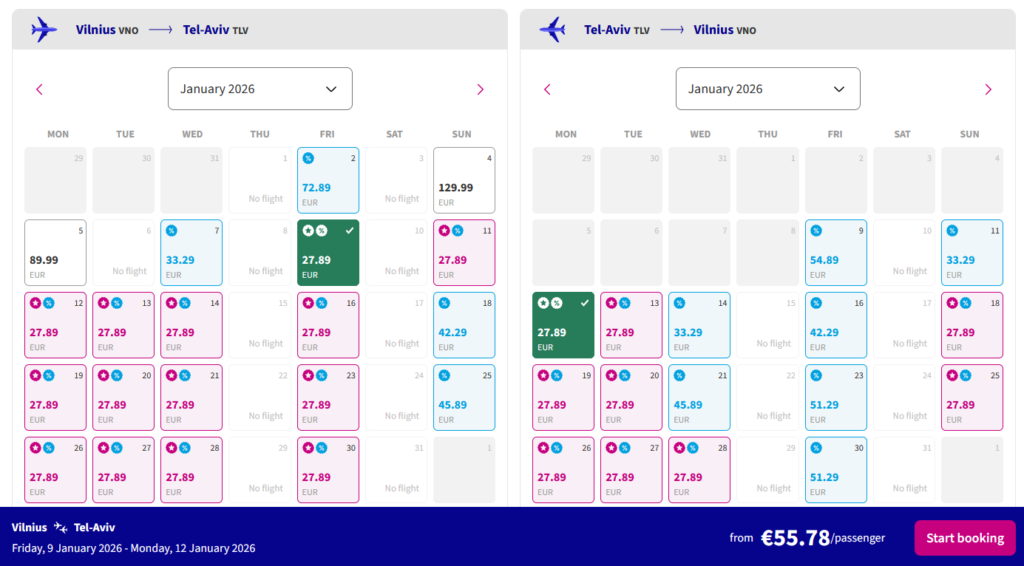 labai daug pigių ir kitomis dienomis skrydžių sausio-vasario mėn., matoma nuotraukoje žemiau.
