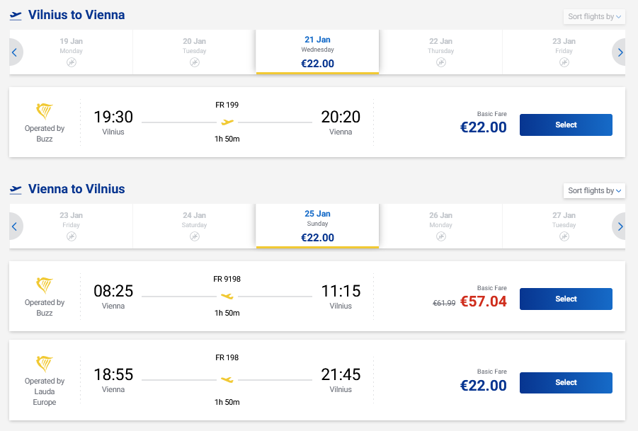 Pigūs skrydžiai į Vieną, Austriją tiesiogiai iš Vilniaus ir atgal su „Ryanair“ oro linijomis.