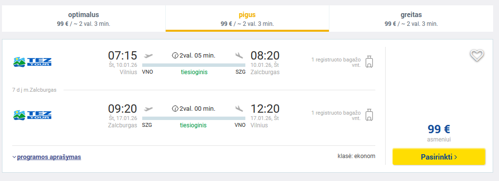 Pigūs skrydžiai į Zalcburgą, Austriją tiesiogiai iš Vilniaus ir atgal su „TezTour“.
