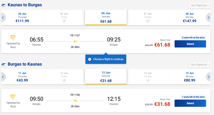 Pigūs vasaros skrydžiai į Burgasą, Bulgariją tiesiogiai iš Kauno ir atgal su „Ryanair“ oro linijomis.