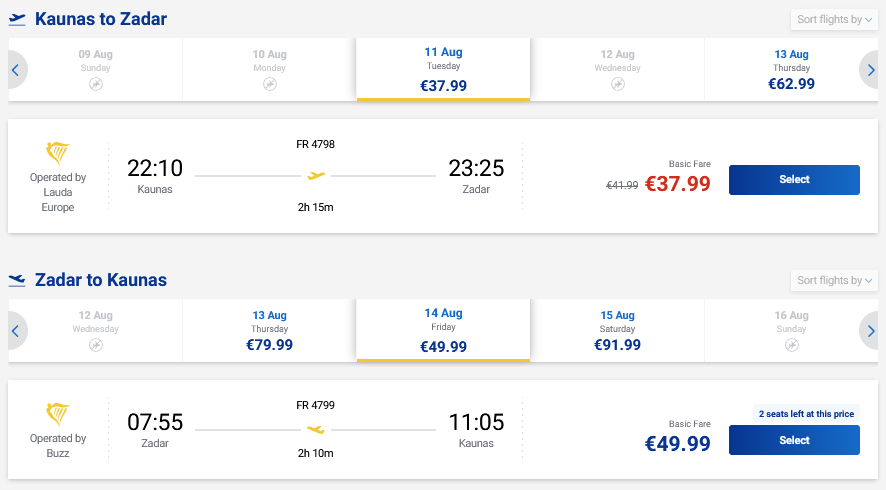 Vasaros skrydžiai į Zadarą, Kroatiją tiesiogiai iš Kauno ir atgal su „Ryanair“ oro linijomis.