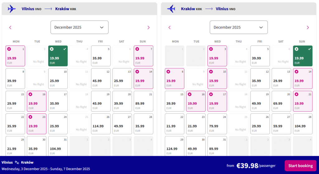 Pigūs skrydžiai savaitgaliui bei Kalėdų mugės metu į Krokuvą, Lenkiją tiesiogiai iš Vilniaus ir atgal su „Wizzair“ oro linijomis.