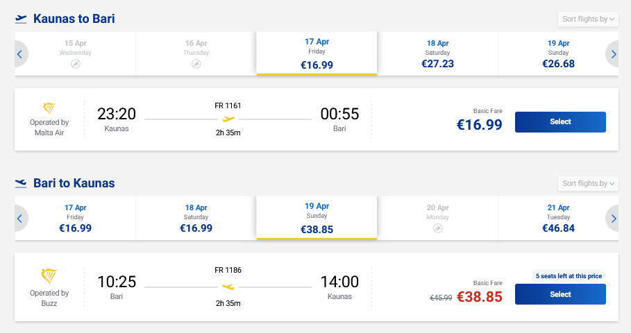 Pigūs skrydžiai į Barį, Italiją tiesiogiai iš Kauno ir atgal su „Ryanair“ oro linijomis.