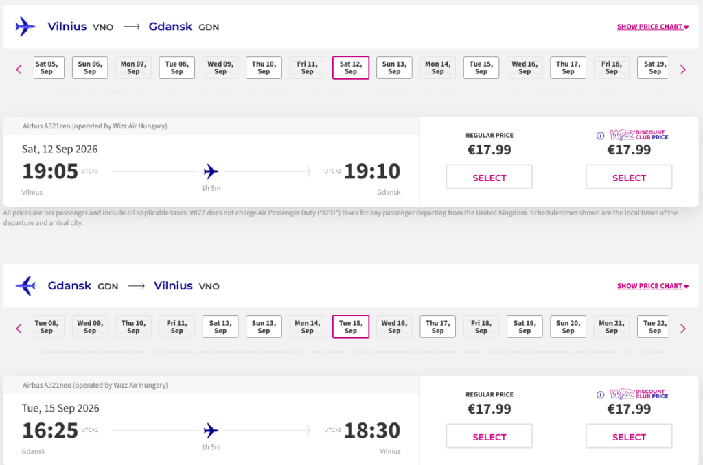 Sezono meto savaitgalio skrydžiai į Gdanską, Lenkiją tiesiogiai iš Vilniaus ir atgal su „Wizzair“ oro linijomis.