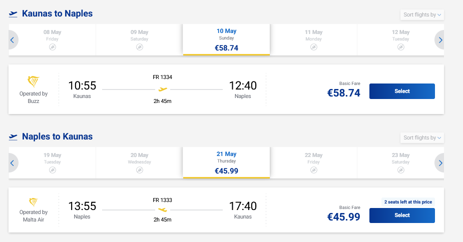 Skrydžiai į Neapolį, Italiją tiesiogiai iš Kauno ir atgal su „Ryanair“ oro linijomis.