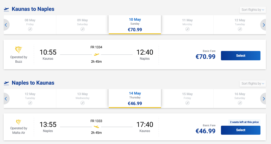 Skrydžiai į Neapolį, Italiją tiesiogiai iš Kauno ir atgal su „Ryanair“ oro linijomis.