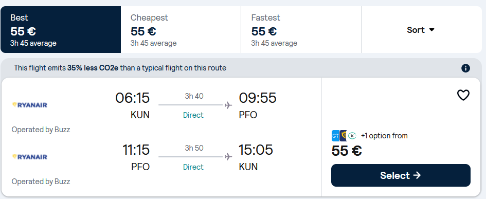 Pigūs sezono skrydžiai į Pafosą, Kiprą tiesiogiai iš Kauno ir atgal su „Ryanair“ oro linijomis.