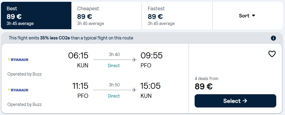 Pigūs skrydžiai į Pafosą, Kiprą tiesiogiai iš Kauno ir atgal su „Ryanair“ oro linijomis.