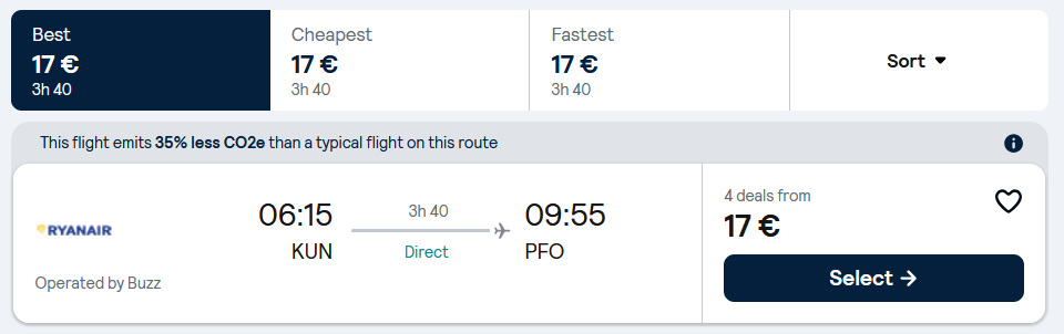 18 gegužės €17 (į vieną pusę, Kaunas – Pafosas)