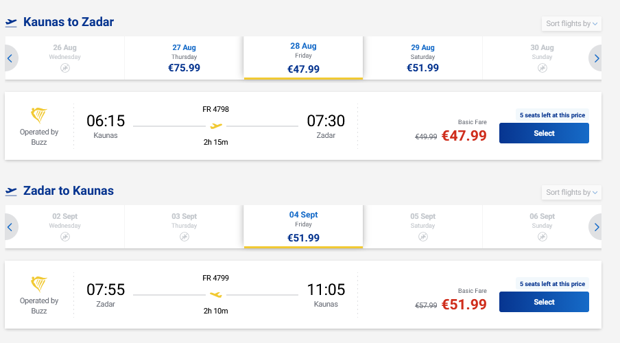Sezono meto skrydžiai į Zadarą, Kroatiją tiesiogiai iš Kauno ir atgal su „Ryanair“ oro linijomis.