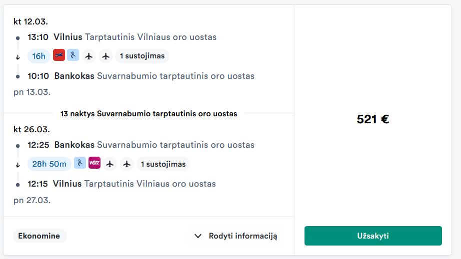 Skrydžiai į Bankoką, Tailandą iš Vilniaus ir atgal.