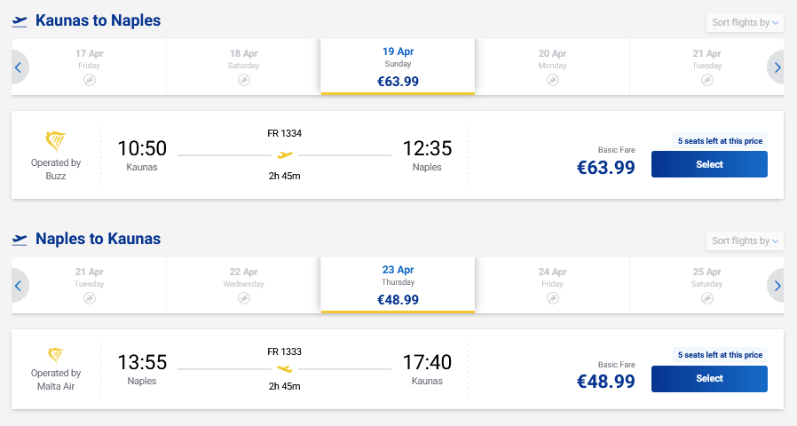 Skrydžiai į Neapolį, Italiją tiesiogiai iš Kauno ir atgal su „Ryanair“ oro linijomis.