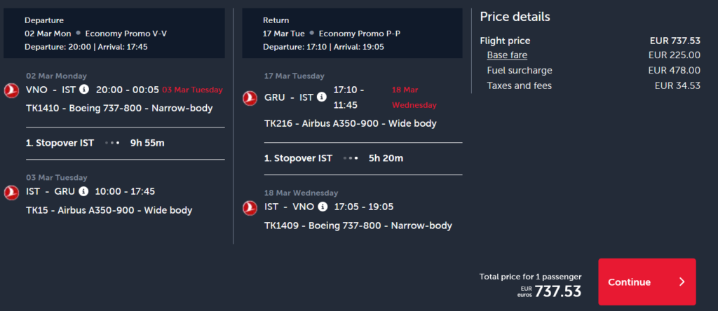 Vilnius – San Paulas – Vilnius (persėdimas Stambule)
