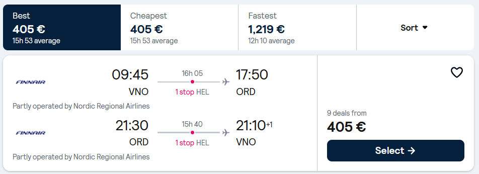 Skrydžiai į Čikagą, JAV iš Vilniaus ir atgal su „Finnair“ arba „LOT“ oro linijomis su vienu persėdimu.