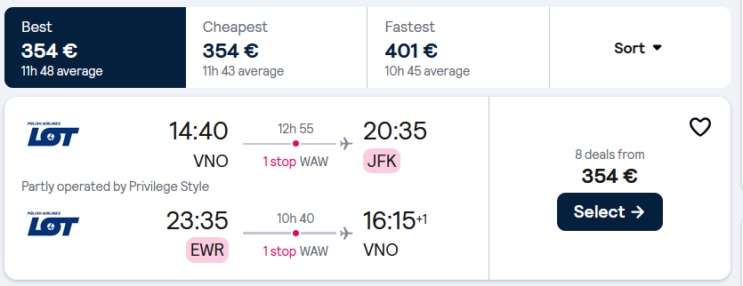 Skrydžiai į Niujorką, JAV iš Vilniaus ir atgal su „LOT“ oro linijomis.