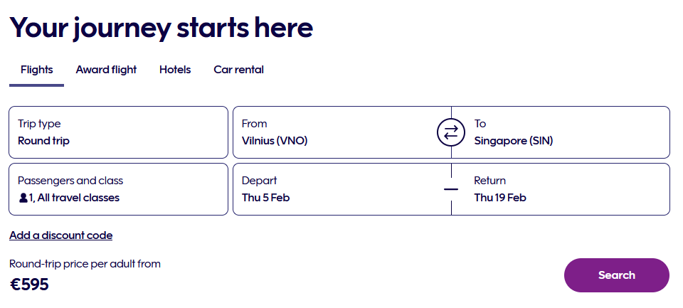 Skrydžiai į Singapūrą iš Vilniaus ir atgal su „Finnair“ oro linijomis.