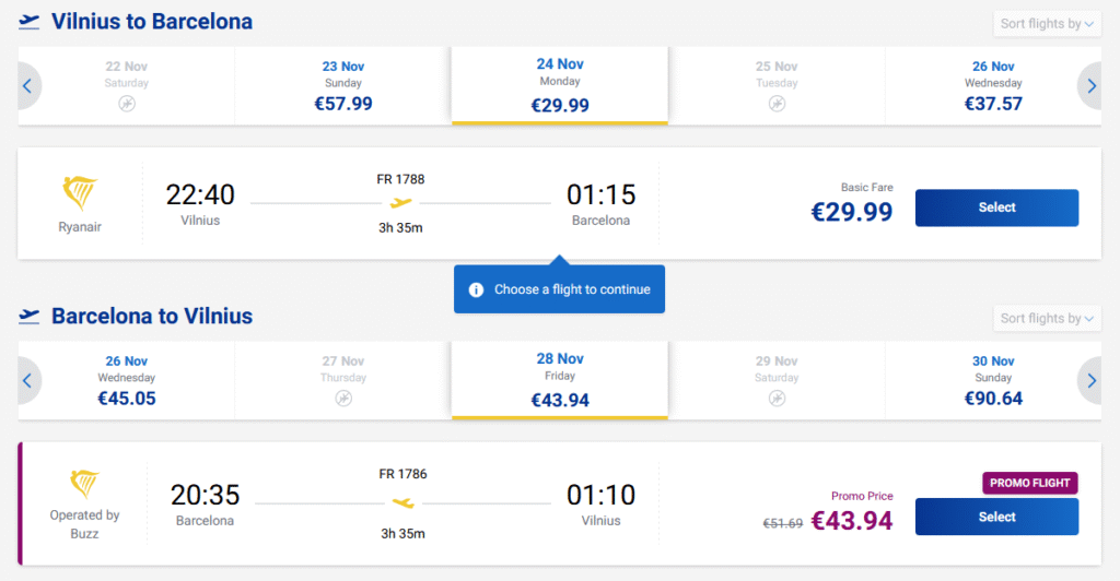Pigūs skrydžiai į Barseloną, Ispaniją tiesiogiai iš Vilniaus ir atgal su „Ryanair“ oro linijomis.