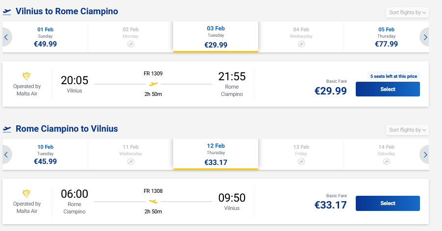 Tiesioginiai skrydžiai į Romą iš Vilniaus į abi puses nuo €63