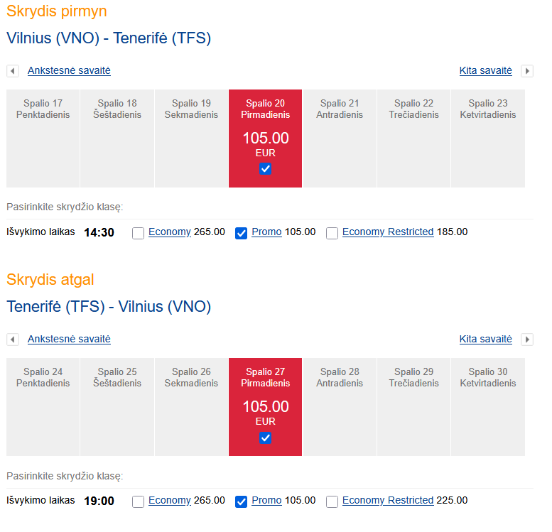 Tiesioginiai skrydžiai į Tenerifę iš Vilniaus į abi puses tik už €229