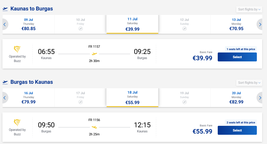 Vasaros skrydžiai į Burgasą, Bulgariją tiesiogiai iš Kauno ir atgal su „Ryanair“ oro linijomis.
