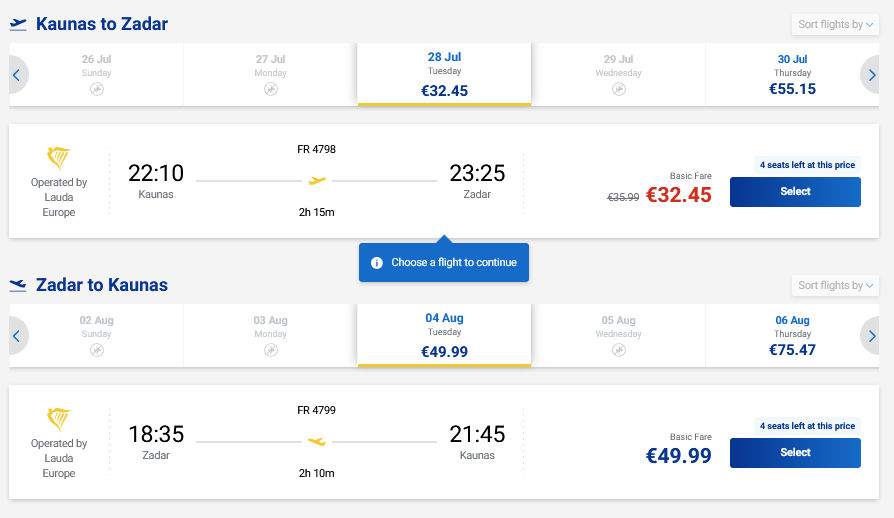 Vasaros skrydžiai į Zadarą, Kroatiją tiesiogiai iš Kauno ir atgal su „Ryanair“ oro linijomis.
