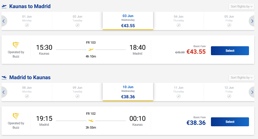 Vasaros skrydžiai į Madridą, Ispaniją tiesiogiai iš Kauno ir atgal su „Ryanair“ oro linijomis.