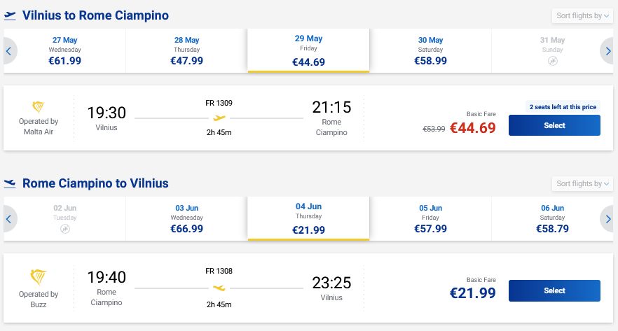 Skrydžiai į Romą, Italiją tiesiogiai iš Vilniaus ir atgal su „Ryanair“ oro linijomis.