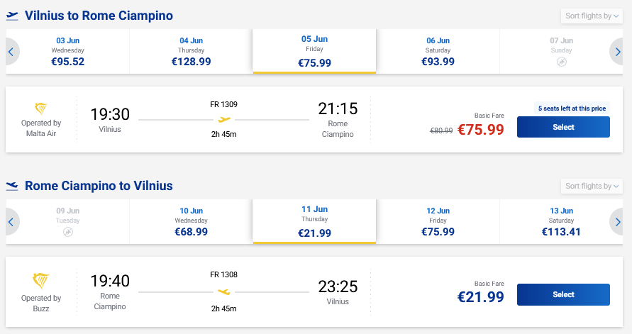 Pigūs skrydžiai į Romą, Italiją tiesiogiai iš Vilniaus ir atgal su „Ryanair“ oro linijomis.