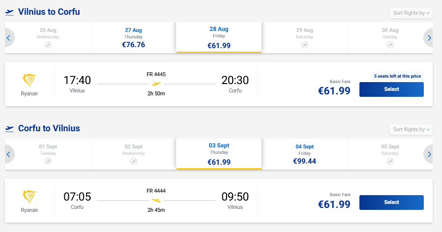 Pigūs vasaros skrydžiai į Korfų, Graikiją tiesiogiai iš Vilniaus ir atgal su „Ryanair“ oro linijomis.
