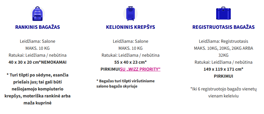 - kokios galioja Wizzair bagažo taisyklės